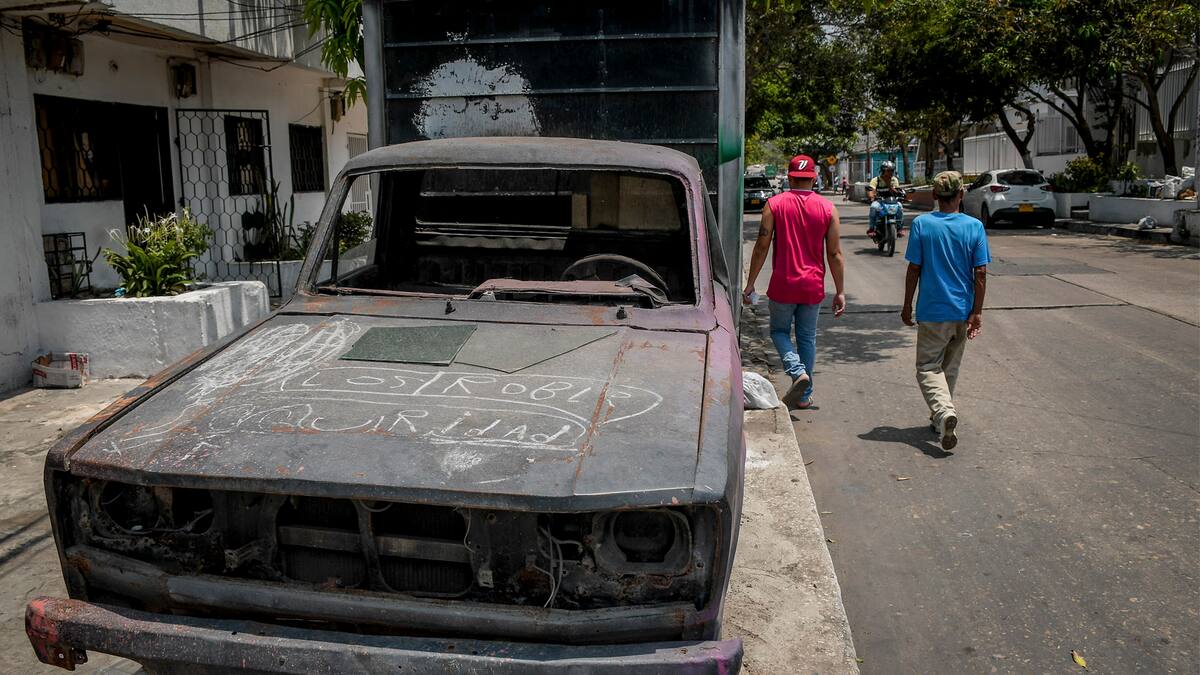 En el barrio Carlos Meisel un Hiundai modelo 90 está parqueado desde hace dos años en una de sus calles, según cuenta Ariel Márquez, un familiar del dueño. Un saco que se mueve al vaivén de la brisa simula el vidrio de una de las ventanas que, entre otras cosas, le hace falta. Márquez, dice que no sabe si podrá ser reparado porque'ni siquiera tiene el motor'.