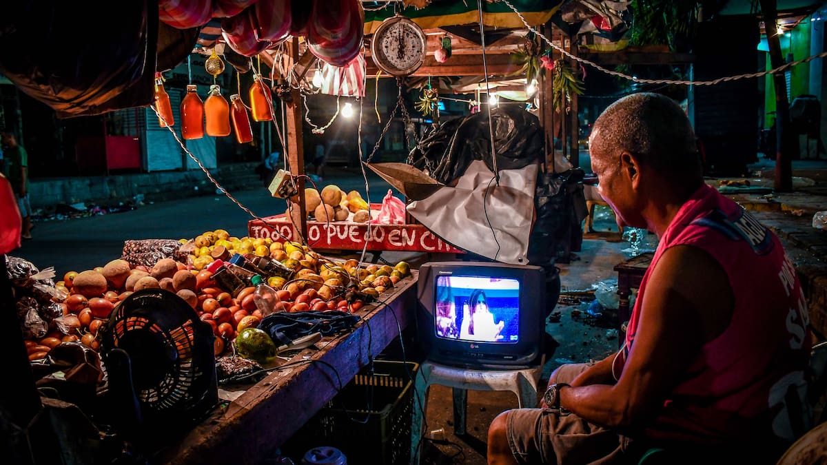 Un viejo televisor de colores fríos que emite imágenes distorsionadas es, a duras penas, el único acompañante de Adolfo Cueto, un vendedor de frutas que a diario trabaja en uno de los sitios de mayor afluencia del Mercado de Barranquilla.
