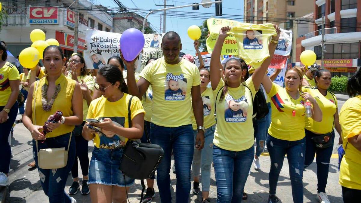 Vestidos de amarillos, familiares y allegados del menor se apostaron a las afueras de la Clínica La Asunción para mostrar su rechazo a este caso de 'negligencia médica'.