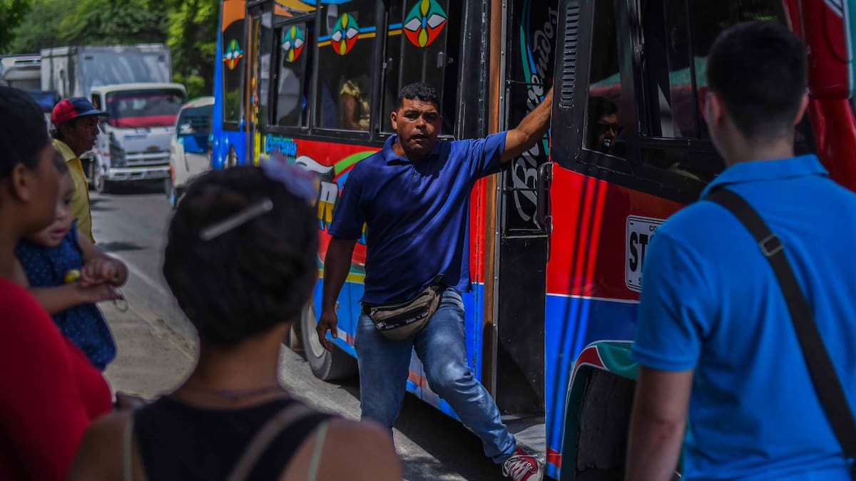 Junto al caluroso reflejo del sol sobre la lata vieja y medio oxidada, Reinaldo Guerrero se aferró con su mano derecha a una vara de metal, erguida entre el piso y el techo amplio del bus. El vehículo, un Mazda del siglo pasado, marchaba a toda máquina, dejando a su paso una humarada espesa y el eco de los ronquidos de su motor añejo. Cuando el conductor redujo la velocidad y se hizo a un lado del camino, Reinaldo, un hombre moreno y grueso, se aclaró la garganta para despedir el grito característico con el que se gana la vida: 'Calamar, Sabanagrande, Salamina, Santo Tomás. Siga, Siga, que hay puesto'.
