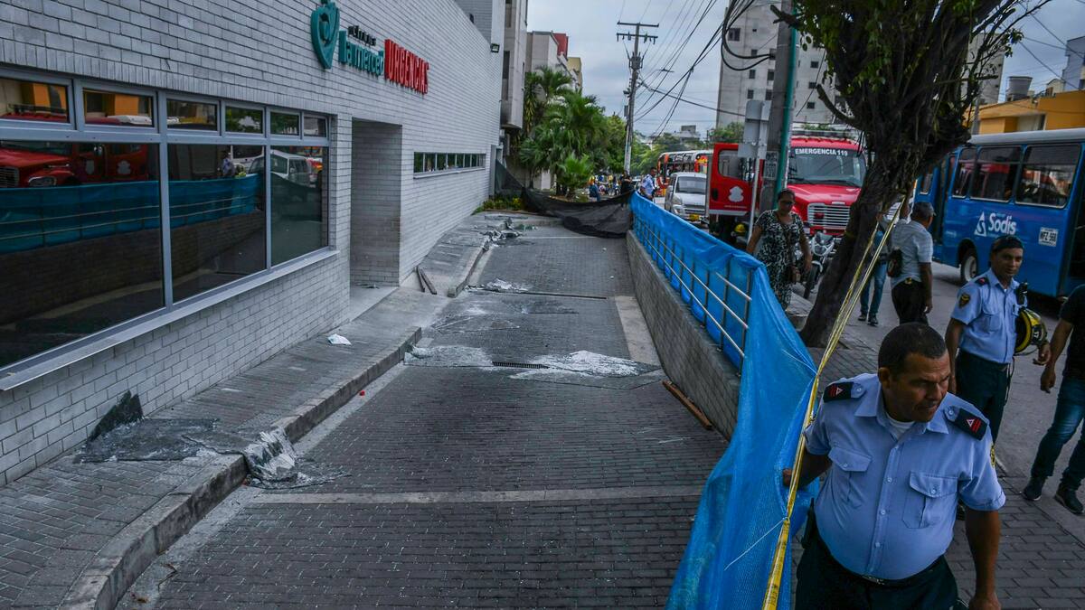 Un camión de bomberos estuvo a disposición de la clínica en caso de algún requerimiento y la zona fue acordonada, los pedazos de vidrios aún se encontraban intactos en el piso de la clínica.