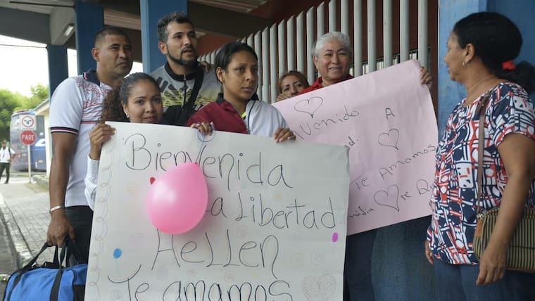 Los exdetenidos fueron recibidos por varios de sus parientes con pancartas que tenían inscritos mensajes de bienvenida, globos y alegría.