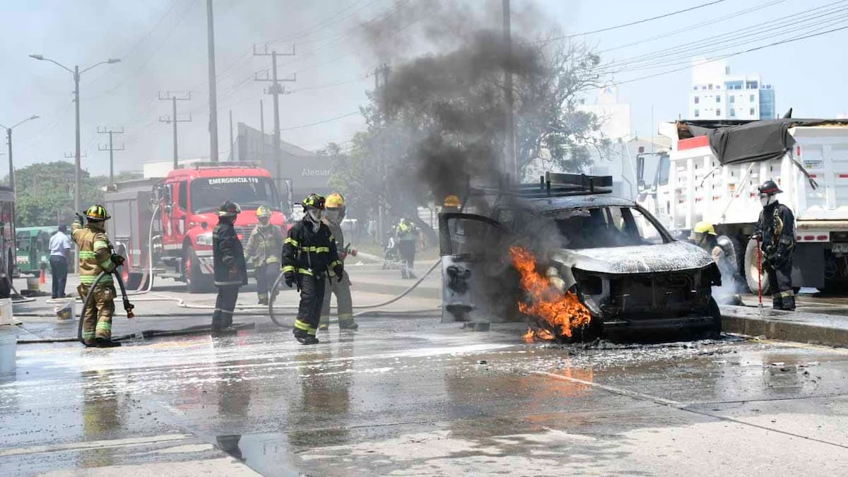 Un vehículo quedó destruido en la mañana de este viernes durante un incendio registrado a las afueras del Batallón Paraíso, en el norte de Barranquilla.