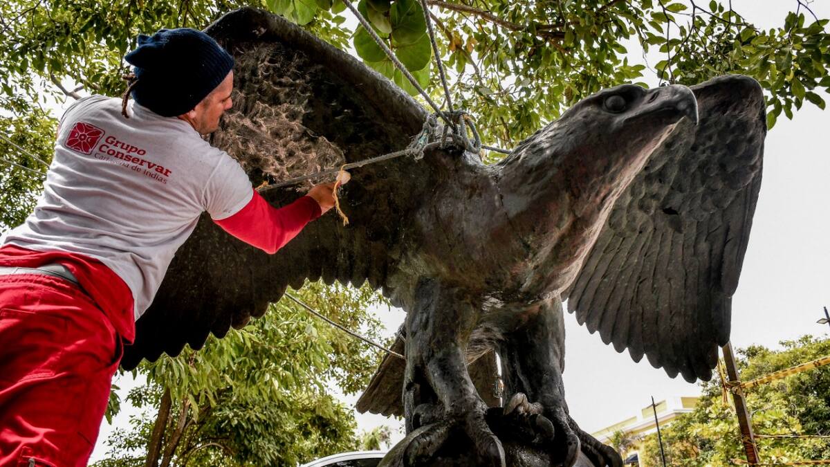 'Estos monumentos han sido en ocasiones atacados por vándalos desadaptados. Irrespetuosos que decapitaron todos los bustos de los fundadores de la aviación y al general De Castro le amputaron la mano derecha'.