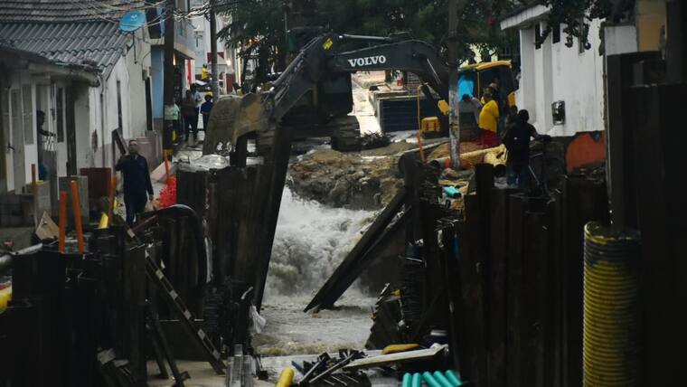 El segundo caso ocurrió en el barrio San Vicente cuando con cabuyas y obreros que laboraban por el sector socorrieron a un taxista que quedó atascado en la fuerte corriente, en la carrera 50 entre calles 84 y 85.