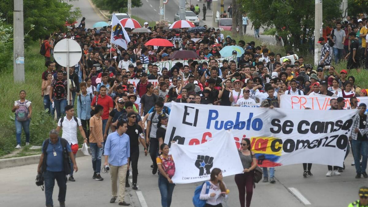 A la altura de la Universidad del Norte, los estudiantes de las IES privadas de la capital del Atlántico se sumaron a la protesta, que también se desarrolla en otras ciudades de Colombia.