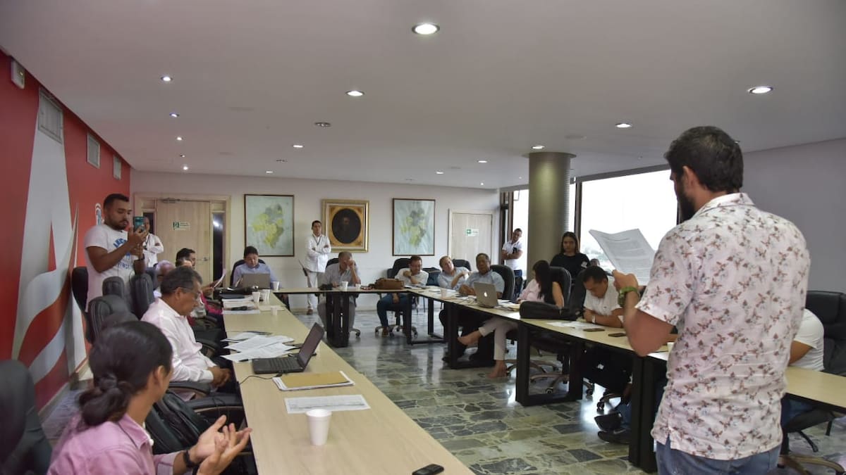 Minutos antes de comenzar la reunión del Consejo Superior Germán Zuluaga, representante de los estudiantes, dijo que en una asamblea multiestamentaria definieron el cese de las clases, con la aprobación no solo de estudiantes, sino de docentes, administrativos y sindicatos, después de los desmanes ocurridos el pasado jueves 24 de octubre al interior de la universidad.