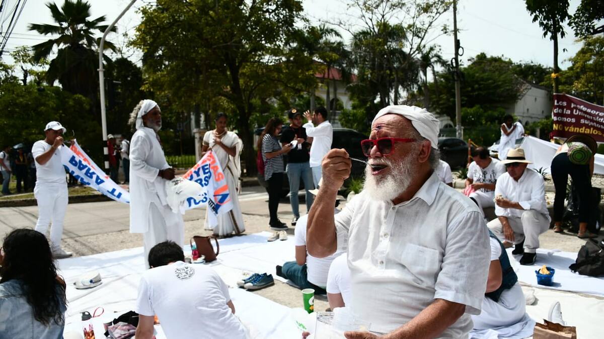 Comida vegetariana, frutas, cereales y otro tipo de alimentos hizo parte del menú de los manifestantes, que se reunieron desde las 12:00 del mediodía frente a la sede de Bellas Artes, por la cual también pidieron 'intervención inmediata'