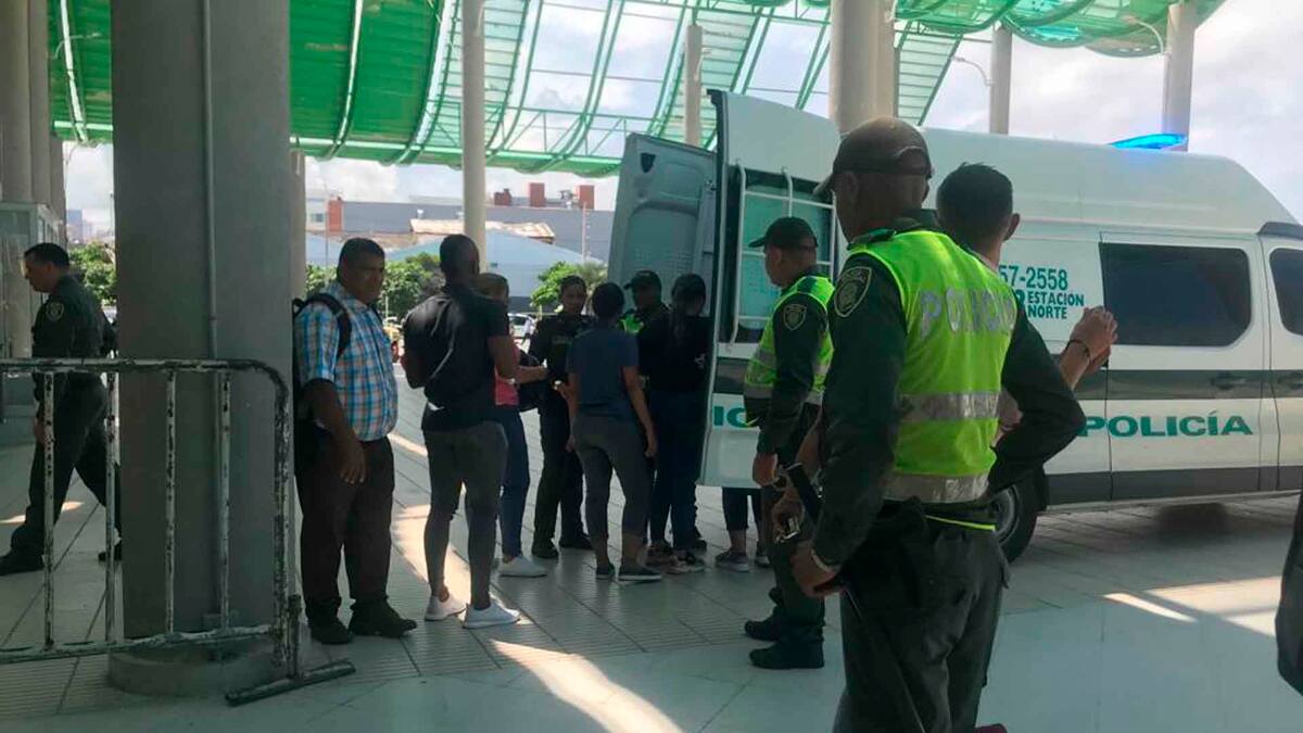 Las personas (6 hombres y 3 mujeres) fueron aprehendidas hacia las 11:45 de la mañana por miembros de la Policía Metropilitana de Barranquilla, quienes los llevaron hasta la URI para que respondan por el delito de falsedad en documento público.