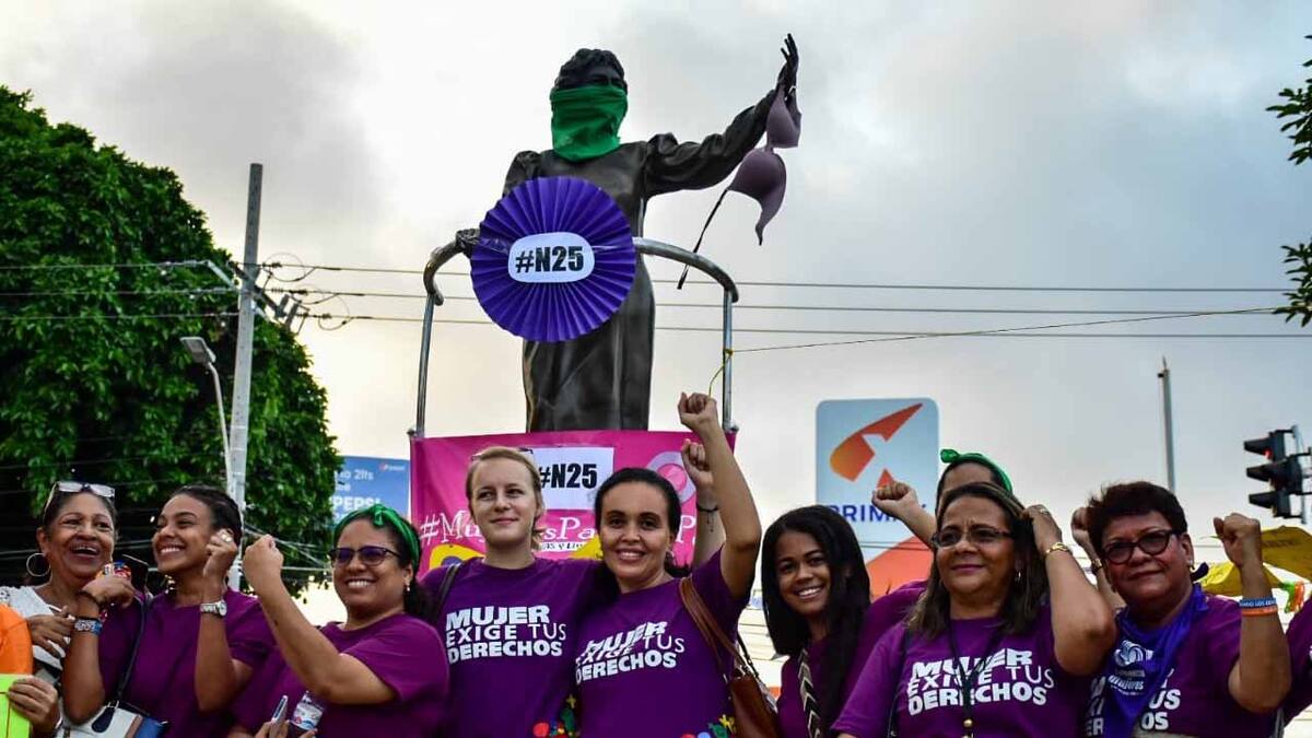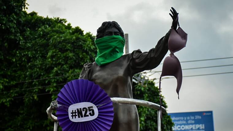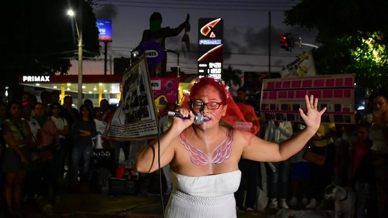 Con una Esthercita Forero con el rostro cubierto con una pañoleta verde, símbolo de la identidad feminista en América Latina, y un sostén en la mano, se conmemoró en Barranquilla el Día de la No Violencia contra la Mujer.