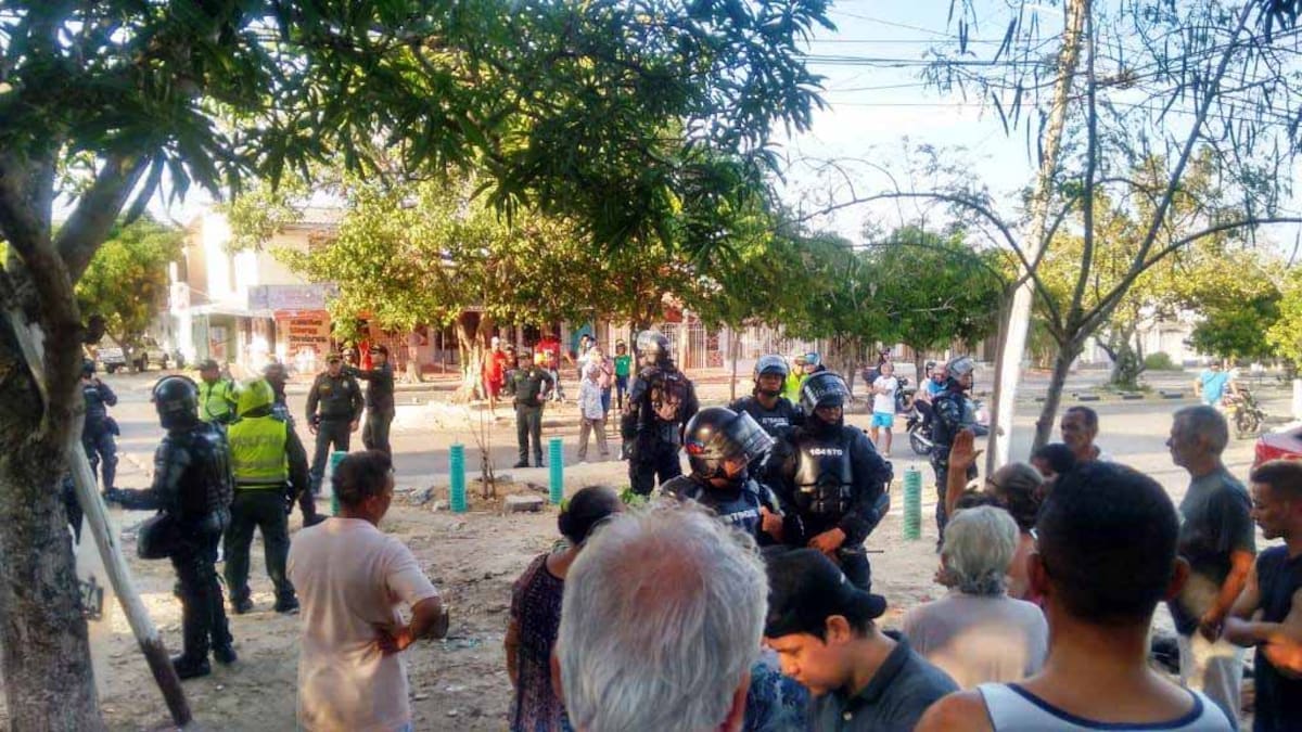 'Hay más agentes del Esmad que en las marchas. Llegaron a apoyar una empresa que desde un principio realizó el procedimiento mal, mostrando un permiso donde no coincidía la dirección, no socializaron con la comunidad y tampoco hicieron procesos de impacto ambiental. Aun así la policía a favor de la empresa privada, cuando debe ser imparcial', es una de las denuncias hechas por una habitante del barrio La Alboraya, a través de la línea Wasapea.