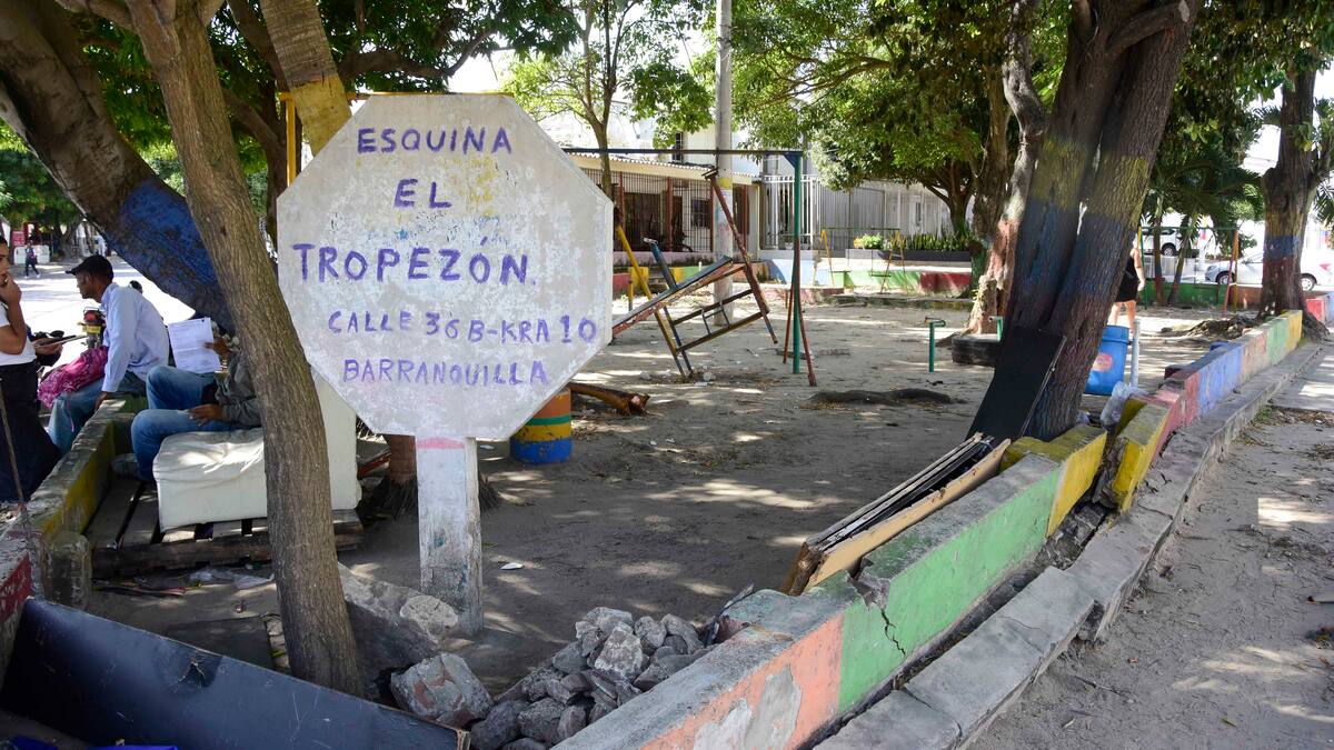 Los habitantes señalan que el mal estado de los andenes del parque ocasiona constantes accidentes. 'Por eso le pusimos 'El Tropezón', porque aquí todo el que pasa se tropieza y se cae', dice Giovani Moreno, señalando un letrero hexagonal que evidencia el nombre del espacio recreacional.