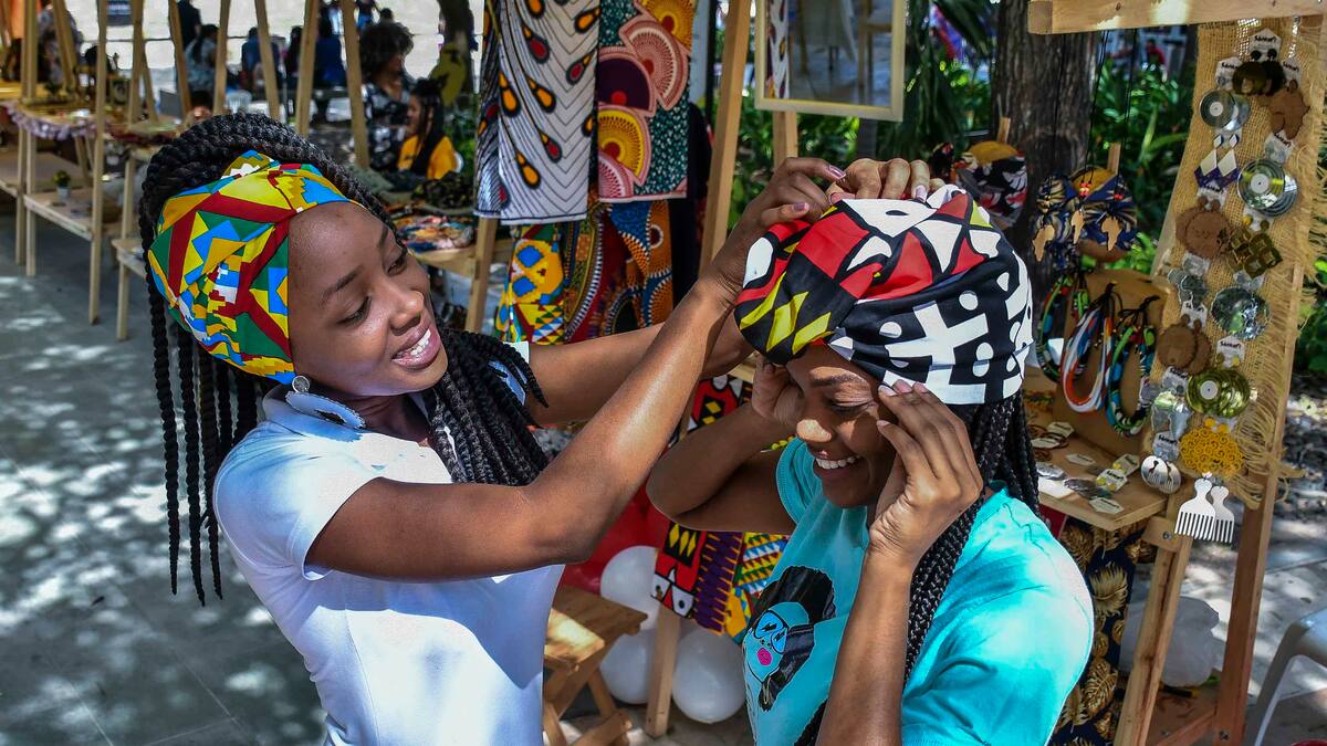 Durante la feria se vendieron productos para hidratar y cuidar el cabello afro, extensiones para trenzas, gorras para cabello crespo. Se trenzaron cabellos y, además, se vendieron y enseñaron a lucir turbantes.
