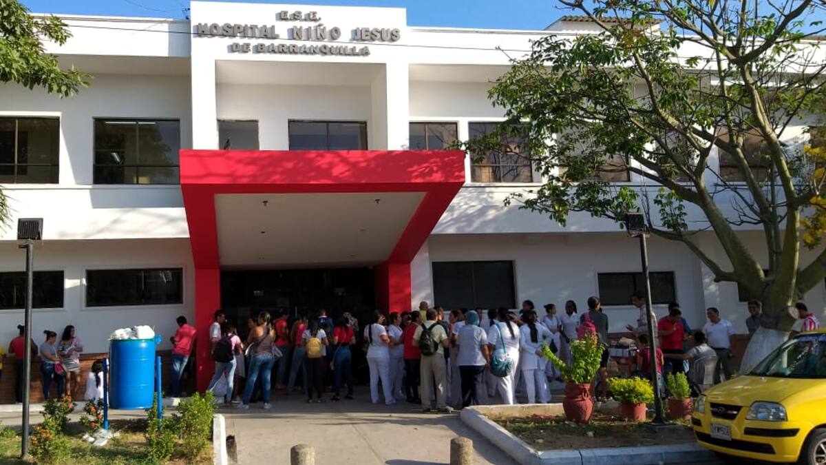 Desde las 6:00 a. m. y hasta las 8:00 a. m., trabajadores del Hospital Niño Jesús de Barranquilla organizaron un plantón en la entrada del área de consulta externa para exigir el pago de salarios atrasados.