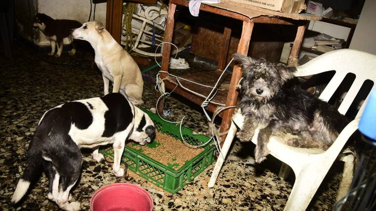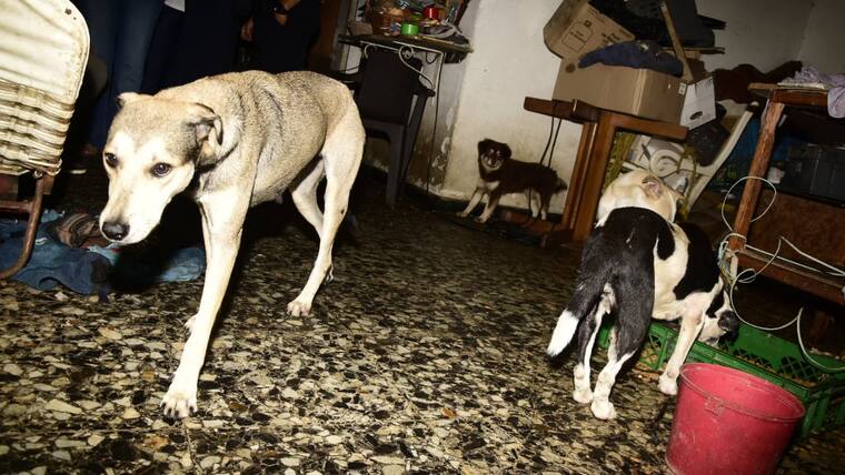 Los perros que se encontraban afuera del inmueble se veían en buenas condiciones, pero en una de las habitaciones había unos 10 caninos que tenían lesiones de piel, al parecer, producidas por la suciedad.