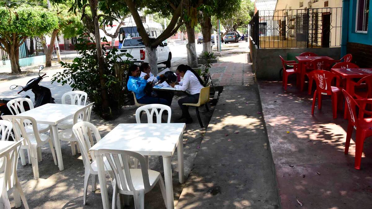 Andrés Maldonado atiende en uno de estos lugares, localizado en la carrera 21 con calle 57, barrio Pumarejo. En la mañana sacó todas las mesas como de costumbre y se preparó para recibir a los clientes. Incluso colocó un recipiente con agua limpia y un frasco con jabón líquido para que quienes llegaran se lavaran las manos.
