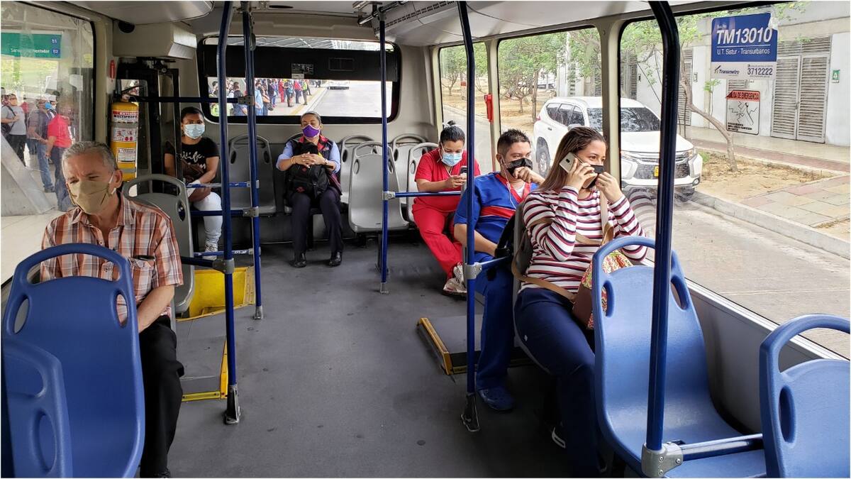 Desde este lunes 27 de abril los usuarios del Sistema de Transporte Masivo de Barranquilla y su área metropolitana solo podrán movilizarse sentados, de acuerdo a lo anunciado por el alcalde de Barranquilla Jaime Pumarejo y el gerente de Transmetro Fernando Isaza, como parte de las nuevas medidas adoptadas para el control de la ocupación de los buses del transporte público en el tercer periodo de aislamiento preventivo obligatorio para mitigar el COVID-19.