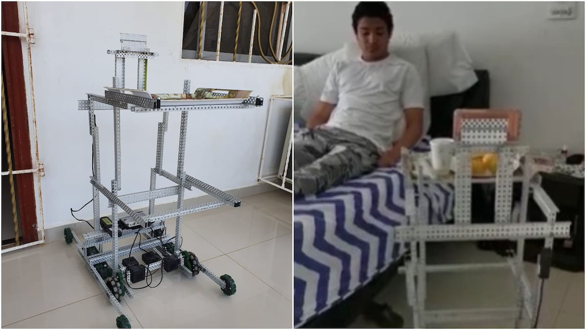Por su parte Leandro Ortiz Rico, del Colegio Inca, agrega que 'este robot tiene cuatro motores para que muevan el chasis que llevarán una bandeja con alimentos, medicinas y equipos médicos como oxímetros y termómetros. También hicimos un soporte elevado para poner un celular, tableta o cualquier tipo de cámara para que se pueda manejar de forma remota en largas distancias'.