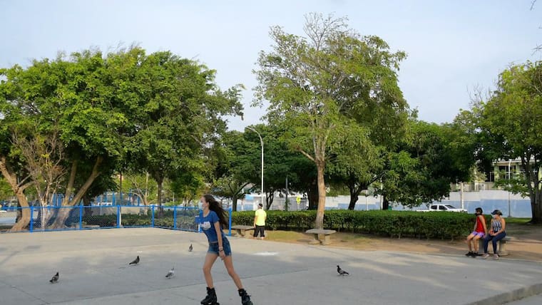 Mientras que en el parque Olaya se observó a una joven en patines, a pesar que su uso está restringido.
