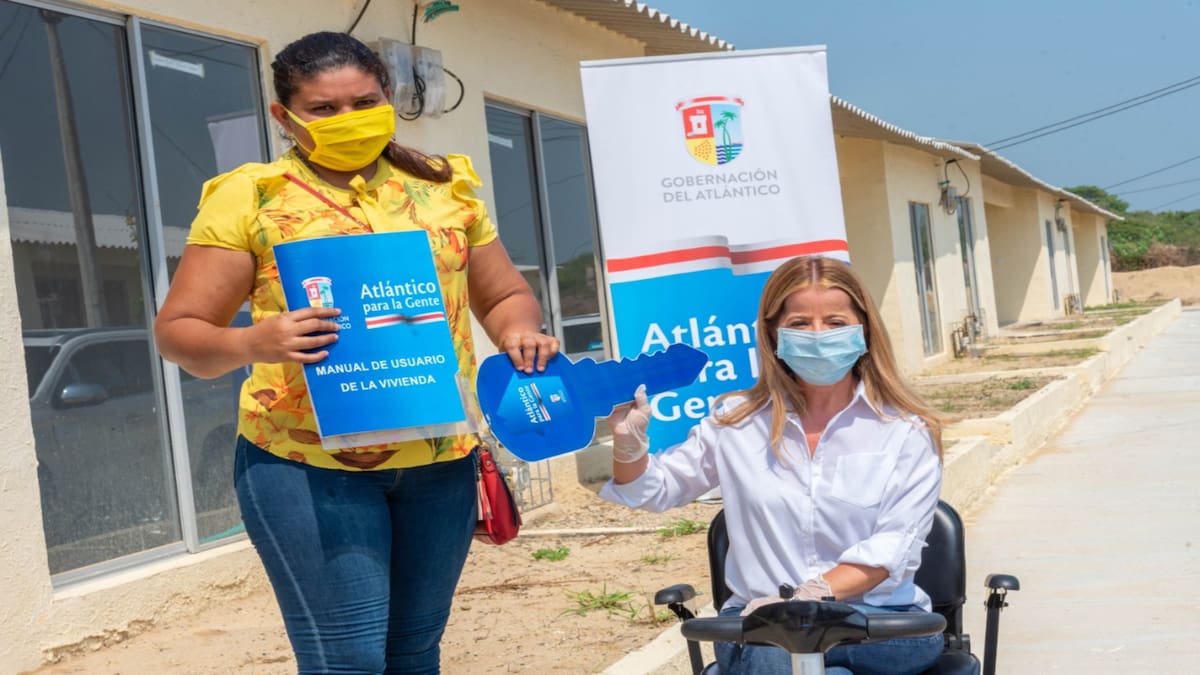 La gobernadora del Atlántico, Elsa Noguera, entregó las dos primeras viviendas de las 200 beneficiarias del proyecto Roble Amarillo en el municipio de Santo Tomás. Dos familias víctimas del conflicto fueron las primeras en recibir las llaves de sus casas y el manual de usuario que las acreditan como propietarias.