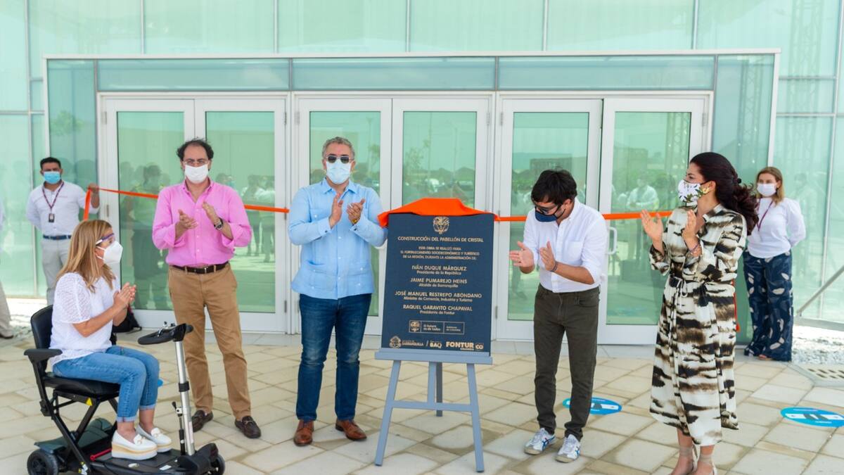 Luego del recorrido en el aeropuerto Ernesto Costissoz, el presidente de la República, Iván Duque Márquez, se trasladó hasta el Gran Malecón del Río, donde hizo la entrega oficial de las obras de la llamada ‘Caja de Cristal’, un nuevo recinto de eventos.