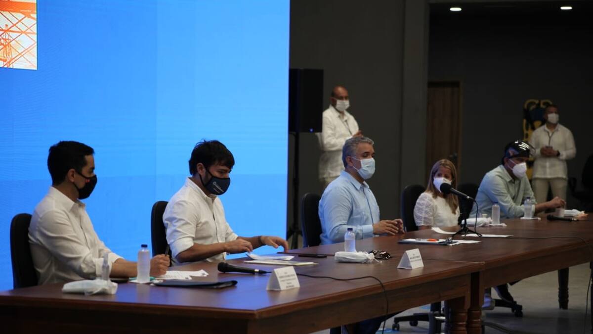 Guardando las medidas de distanciamiento social se llevó a cabo esta reunión en la recién inaugurada caja de cristal. El alcalde, Jaime Pumarejo dijo que 'la llave' con el presidente Duque ha sido clave para atender la emergencia por Covid-19, generar las condiciones para poner en marcha el proceso de reapertura gradual, responsable y segura de la economía y para impulsar los grandes proyectos de ciudad.
