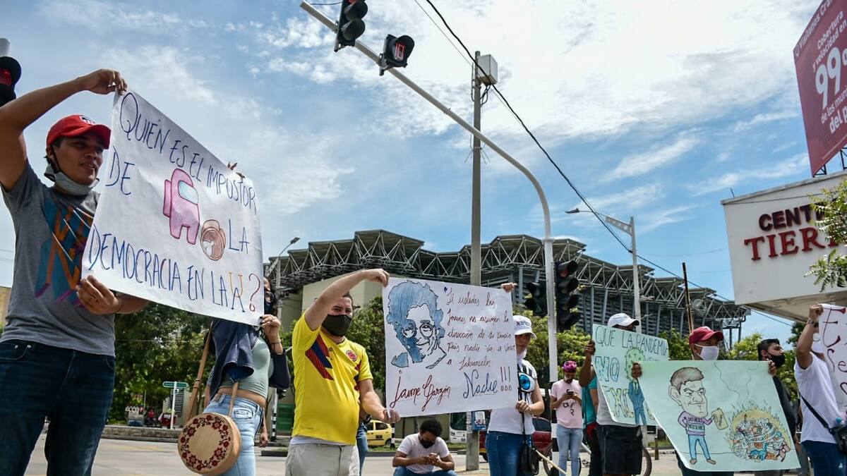 Con pancartas y cumpliendo con los protocolos de bioseguridad, los universitarios se apostaron en la calle 72 con carrera 46 para exponer su inconformismo tras la suspensión de las votaciones, que estaban programadas para el pasado 16 de septiembre.