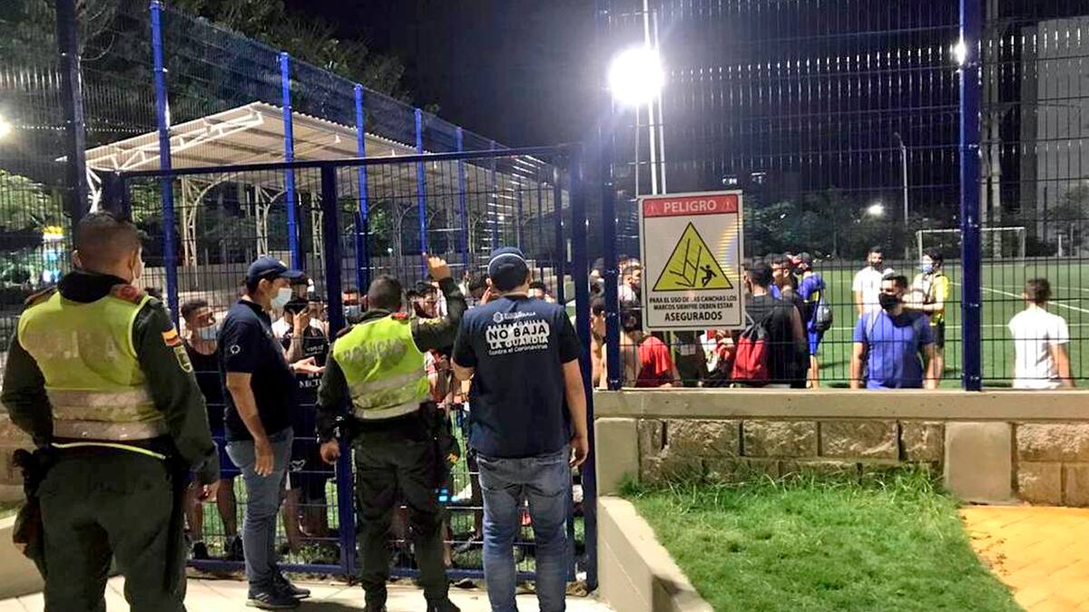 En la noche de este viernes un grupo de jóvenes se reunió en el Parque Tívoli, ubicado en el norte de Barranquilla, para 'echar una pateada' en una de las canchas de este escenario polideportivo. Pese a la prohibición del uso de las canchas sintéticas de fútbol, estas personas decidieron saltar las vallas para ingresar a la cancha.