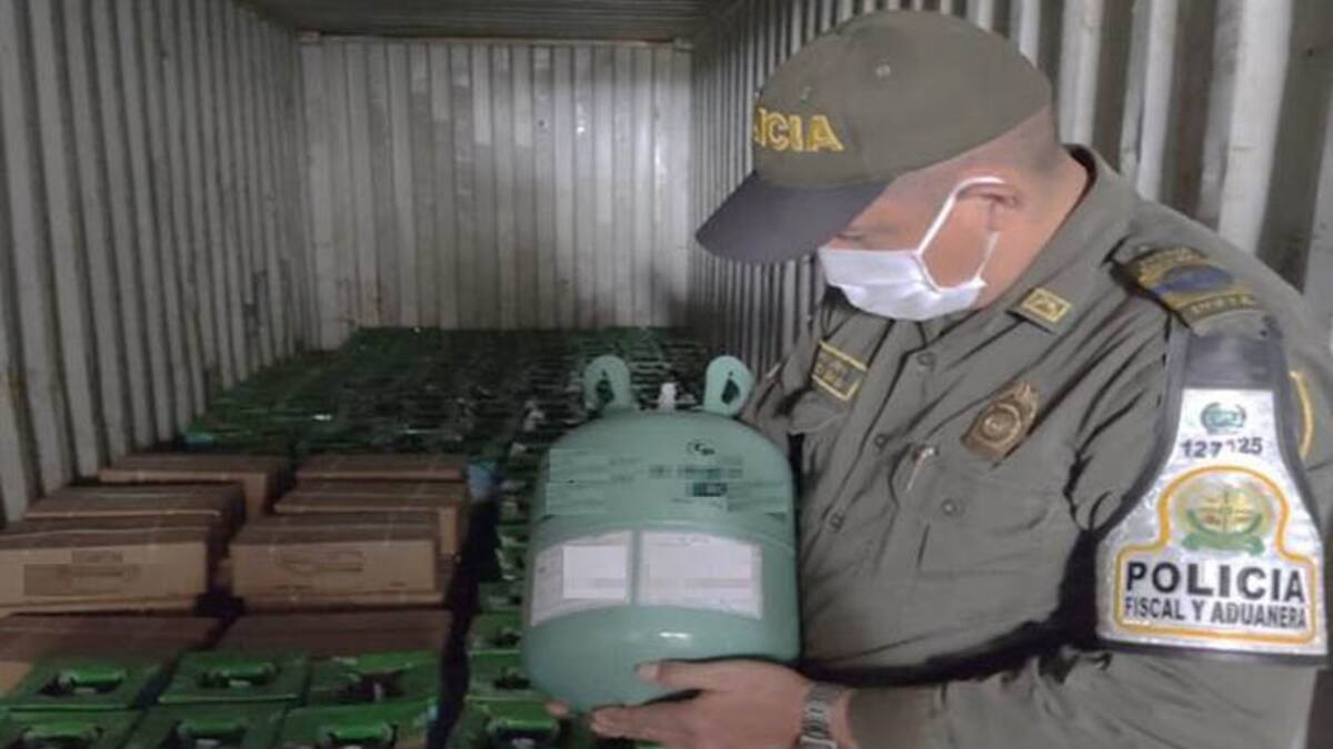 Funcionarios de la Policía Nacional, a través de la Policía Fiscal y Aduanera, en coordinación con la Dirección Seccional de Aduanas de Barranquilla, incautaron 200 cilindros de gases refrigerantes que, además de no contar con la documentación soporte que acreditara su legal ingreso al país, representan riesgo para la capa de ozono por ser un hidroclorofluorocarburo.