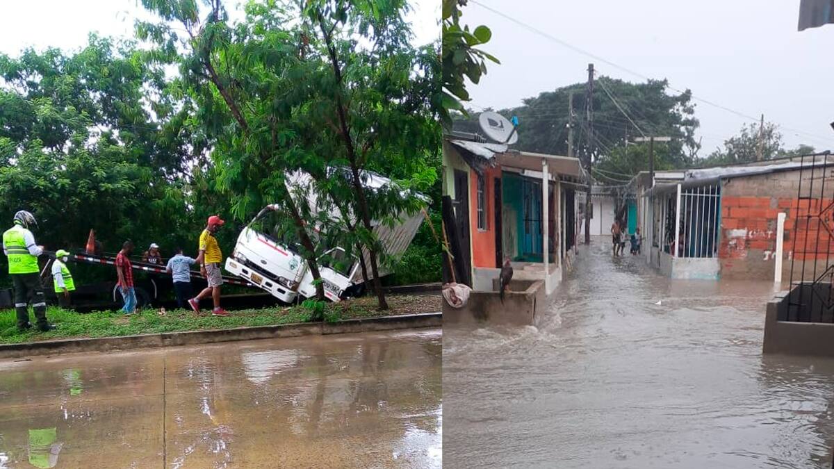 Durante el aguacero, usuarios reportaron además que un camión se volcó tras quedarse sin frenos en la bajada del sector conocido como Los Toboganes.