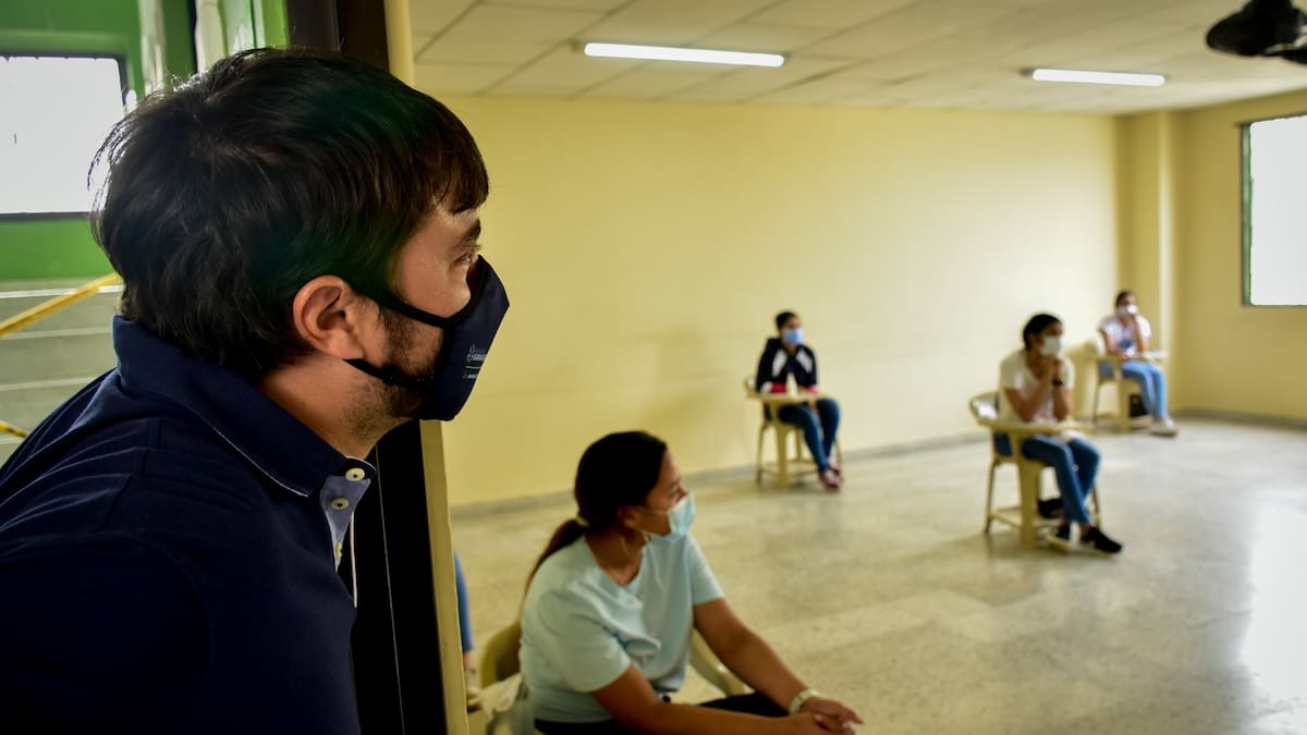 El alcalde Jaime Pumarejo Heins, en su visita a uno de los puntos de aplicación, felicitó a los estudiantes y a sus familias por haber acudido a su citación, teniendo en cuenta que 'este es un paso más para alcanzar sus sueños'.