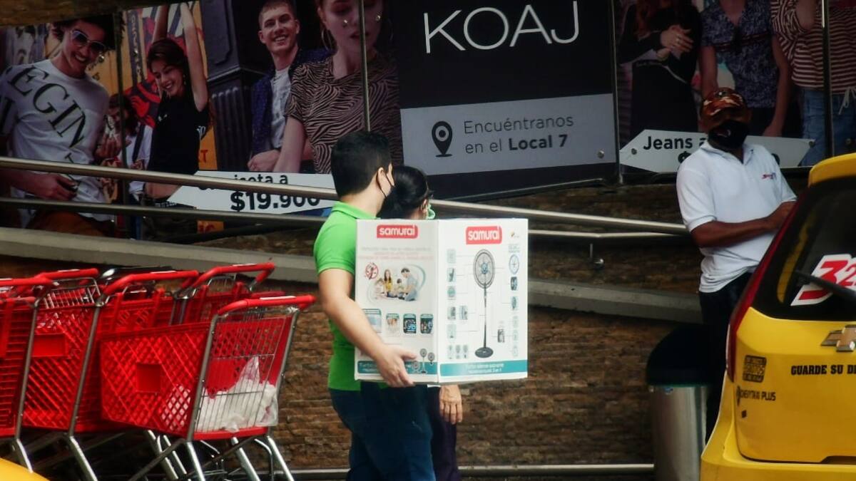 En algunos centros comerciales de la ciudad y su área metropolitana se ven filas de ingreso para comprar productos. La jornada avanza con normalidad.