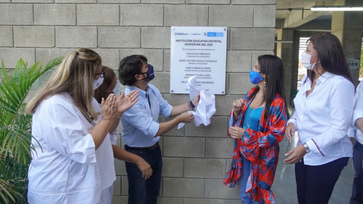 La ministra de Educación, María Victoria Angulo, acompañó al alcalde Jaime Pumarejo a entregar las obras de ampliación y mejoramiento que fueron ejecutadas a través del Fondo de Financiamiento de la Infraestructura Educativa.