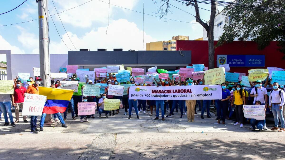 Trabajadores de la EPS Asociación Mutual Barrios Unidos de Quibdó (Ambuq) protestaron frente a las instalaciones del Ministerio del Trabajo seccional Atlántico para exigir que no se cumpla la orden de liquidar la entidad, que fue tomada por la Superintendencia Nacional de Salud (Supersalud).