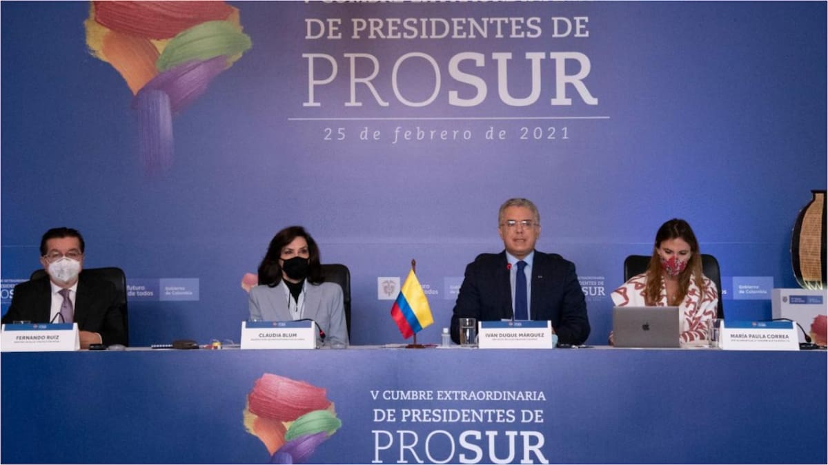 En ese mismo encuentro, Duque hizo un llamado, a nombre de Prosur, a que los países productores de vacunas contra el covid-19 faciliten el suministro, de acuerdo con los contratos, y no impongan restricciones para su exportación.