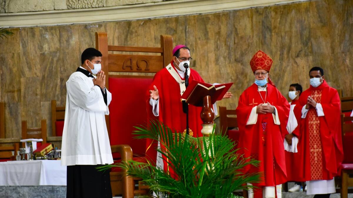 'Por segundo año consecutivo celebramos esta Semana Mayor en medio de la pandemia, el año pasado estábamos confinados y esta celebración la hicimos sin presencia de fieles. Hoy, al menos, por pura gracia del Señor ustedes están presentes. Otros siguen esta celebración por las distintas redes sociales y los medios de comunicación que por fortuna tenemos', indicó