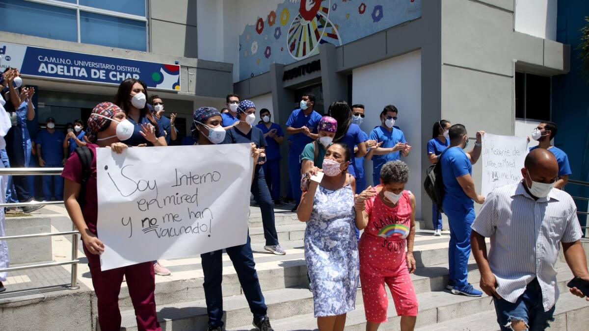 Tras la protesta que realizaron varios médicos residentes en el Camino Adelita de Char, la Universidad Libre Seccional Barranquilla informó que comenzaron a ser vacunados en la tarde del lunes.