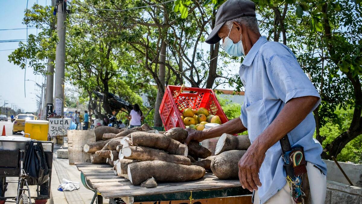 El hombre aseguró que lleva más de 20 años dedicado a la venta de frutas y verduras en Barranquilla. A raíz de la pandemia, gracias a esos camiones que llegan todos los días a mediodía desde el sur del Atlántico, es que obtiene los bultos de yuca que les vende a las demás personas.