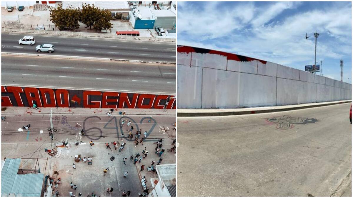 Solo unas horas duró el mural pintado por manifestantes en el puente de la carrera 38 con avenida Circunvalar, en Barranquilla.