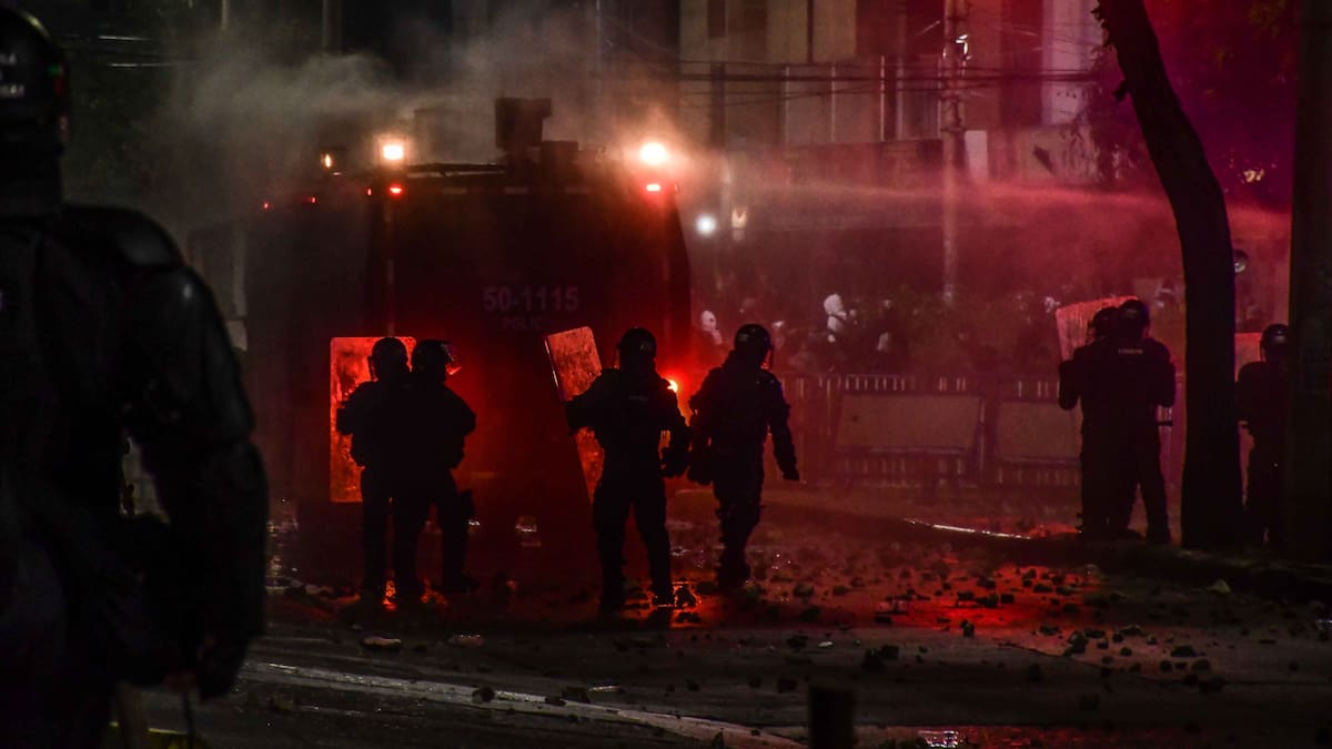 'Búfalo 1, al ataque'. Es la clave que se alcanza a escuchar para darle paso a una de las tanquetas del Esmad. Desde el vehículo son disparados chorros y chorros de agua para alejar a los revoltosos. Hay resistencia por parte de ellos y eso conlleva a que se lancen los primeros gases lacrimógenos. Minutos después se pierde la cuenta de las detonaciones. El ambiente se espesa a causa de esta arma química que afecta a algunos integrantes de la misión médica.