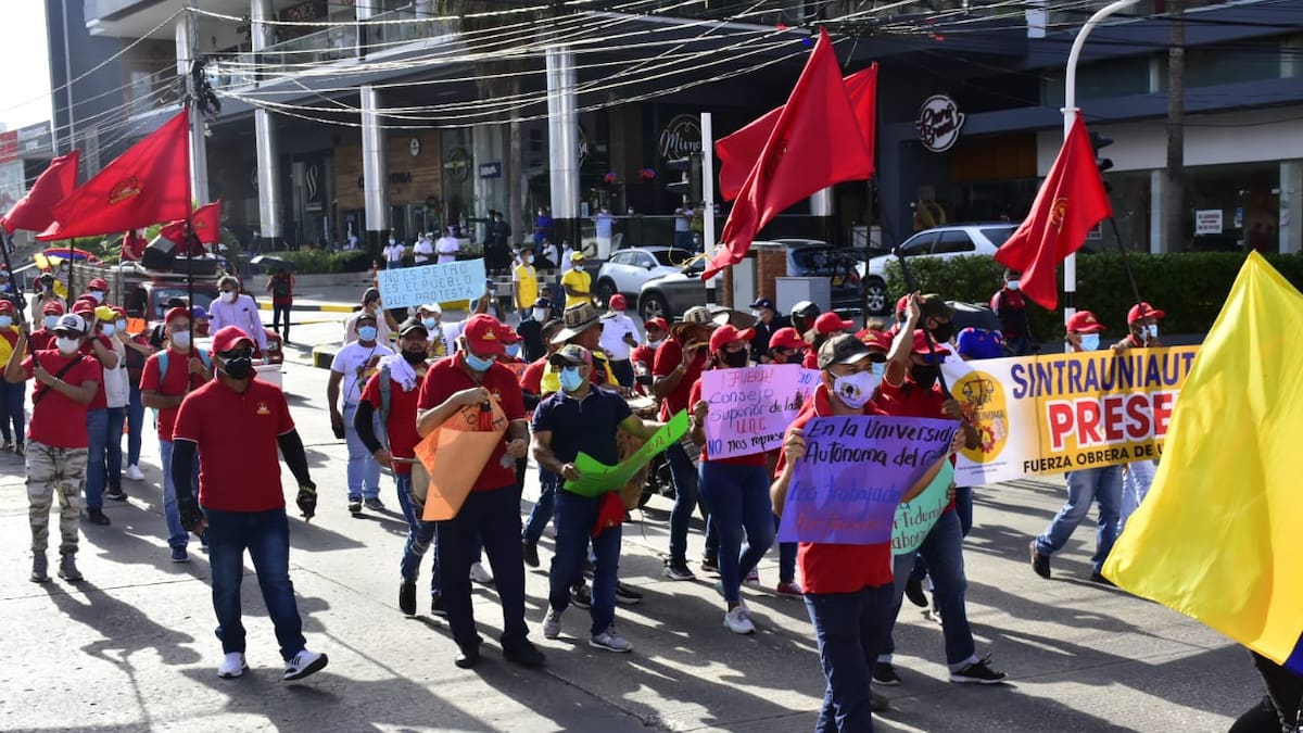 A la movilización se sumó el sindicato de la Universidad Autónoma del Caribe, SintraUAC, quienes aseguran que la institución no les está cumpliendo a los trabajadores.