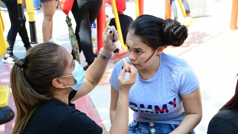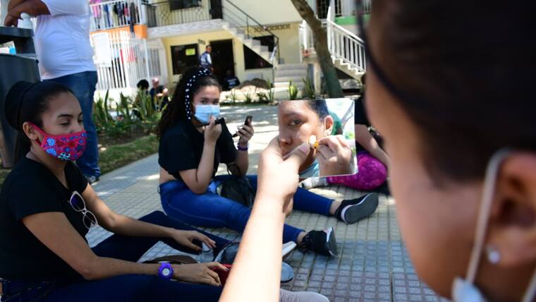 'Les he enseñado a identificar a cada una su tipo de rostro para que ellas puedan trabajar las correcciones. La experiencia ha sido diferente porque cuando uno se va a maquillar tiene que tener toda la comodidad pero nos estamos adaptando a lo del cielo abierto del parque', dijo de la Hoz.