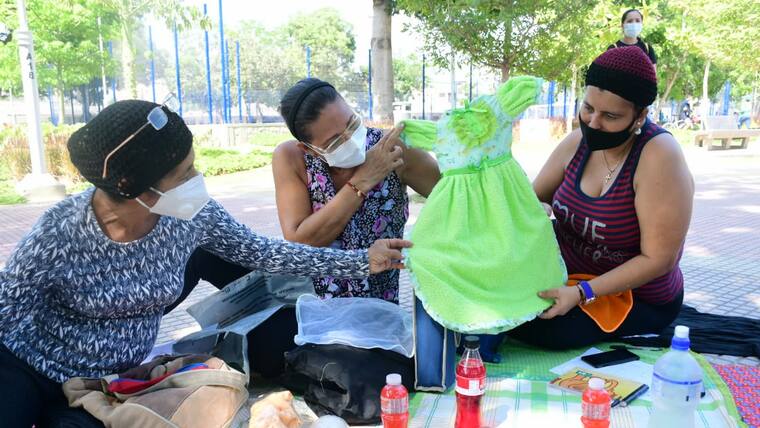 Sentadas en unos manteles en el piso del parque La Inmaculada, unas 20 mujeres atendieron las indicaciones de la profesora que les enseñó a realizar distintas manualidades. Alejandra Moreno, una de las asistentes, manifestó que 'esto es súper, porque la actividad al parque es para recrearnos más. Somos mujeres que estamos en casa y hoy estamos haciendo actividad en el parque. Este taller es muy bueno, tú lo puedes colocar en tu casa, ir aprendiendo más y hasta vender tu producto también'.