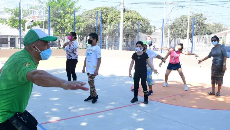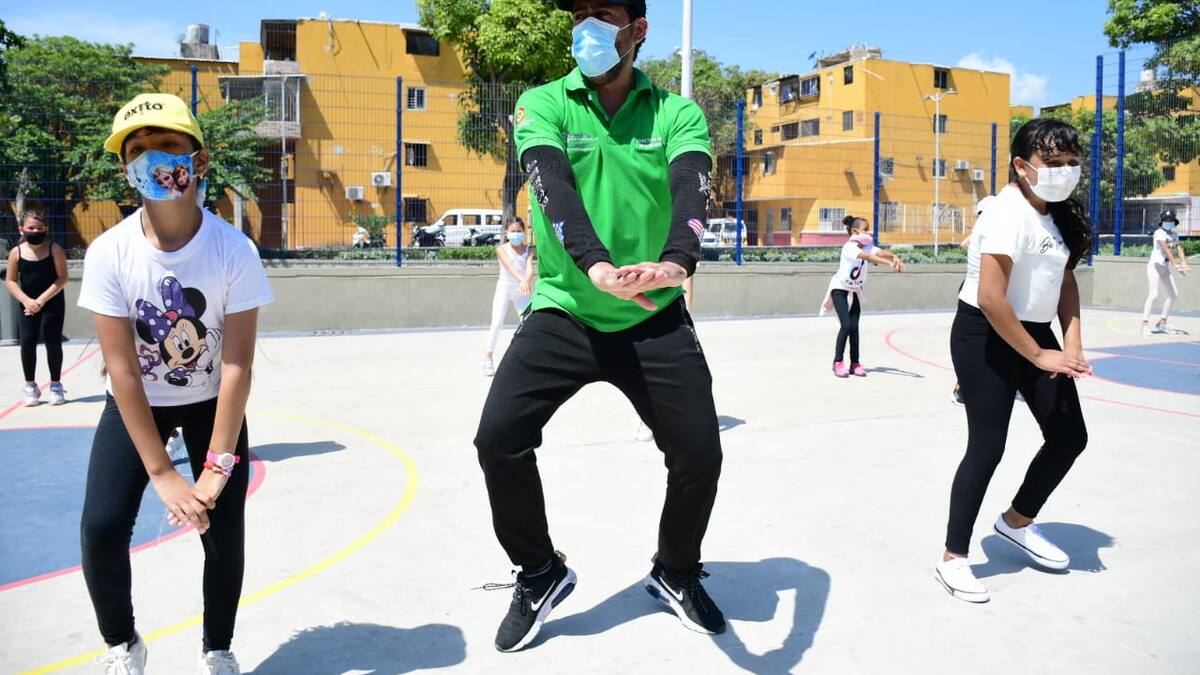 En la cancha del parque La Inmaculada, en la localidad Suroriente, con el debido distanciamiento de mínimo un metro, un grupo de jóvenes y adultos realizaron actividades de estiramiento y bailaron durante casi dos horas al ritmo de diferentes géneros musicales. Un profesor les enseñó diferentes pasos y coreografías.