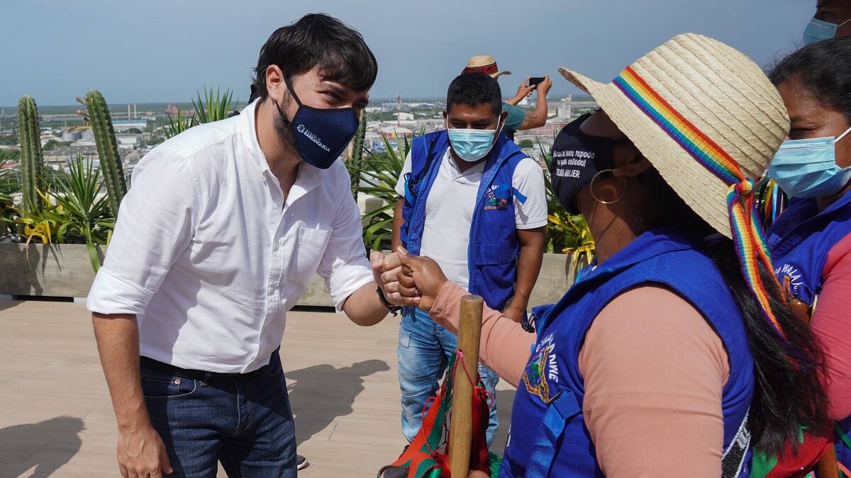 El alcalde de Barranquilla, Jaime Pumarejo, sostuvo un encuentro privado con representantes de la minga indígena que llegó a Barranquilla el pasado miércoles. El mandatario les dio una bienvenida fraternal a la ciudad.
