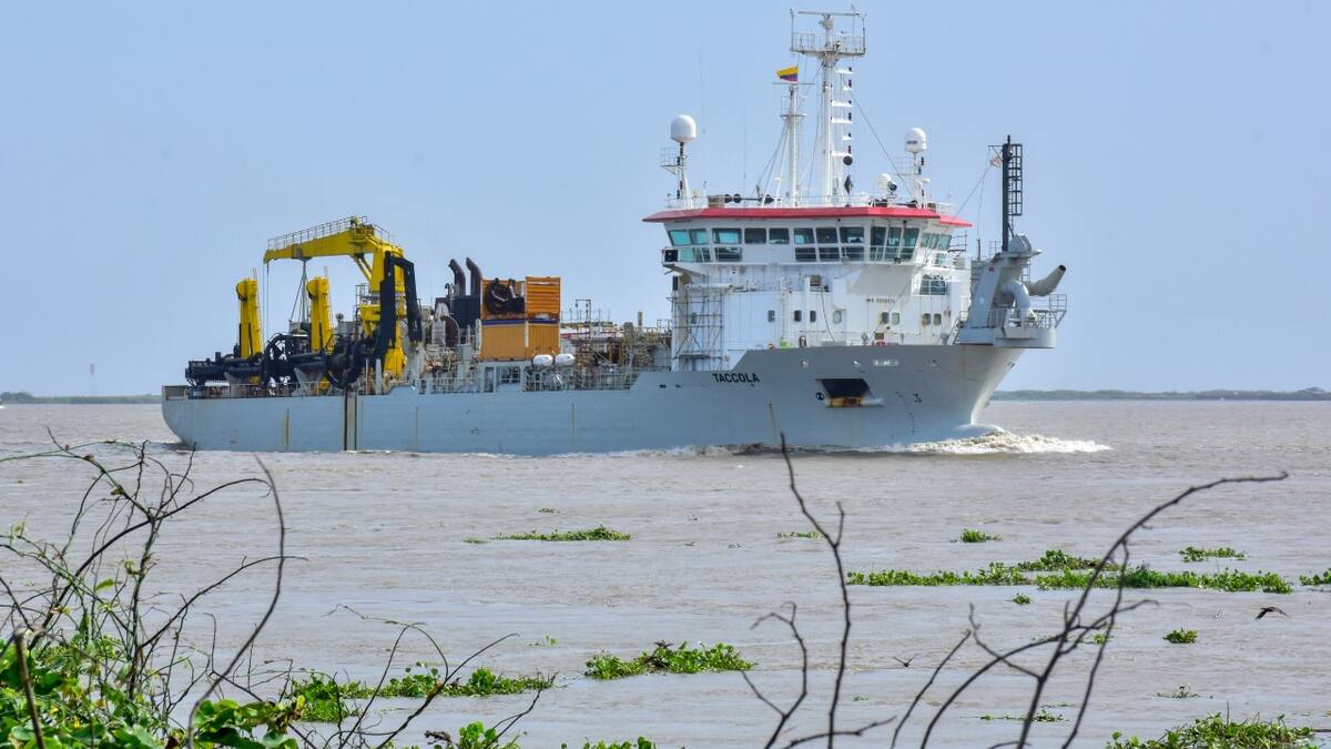 La draga Taccola, de la compañía Jan de Nul, arribó a Barranquilla para poder empezar hoy con las labores de dragado y así habilitar el canal de acceso a la zona portuaria, el cual se encuentra con un calado de 6,7 metros y ha generado la parálisis de las operaciones del sector.