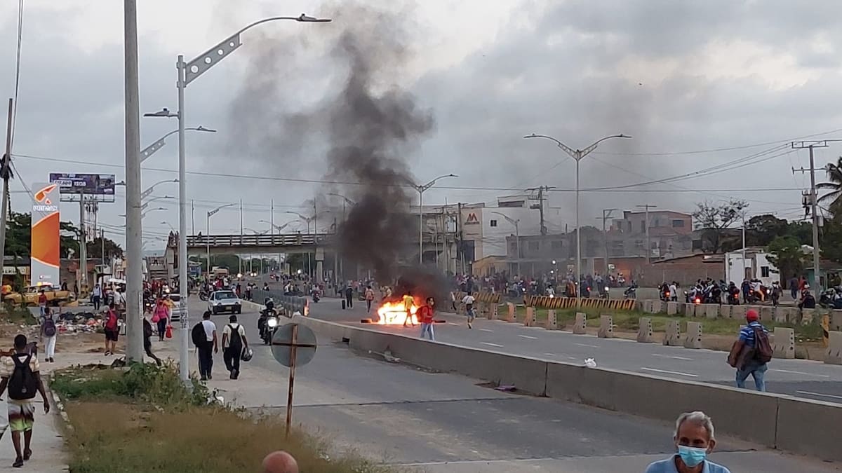 De acuerdo con los reportes, el bloqueo del flujo vehicular se debe a un grupo de manifestantes que se han tomado la vía como señal de protesta.