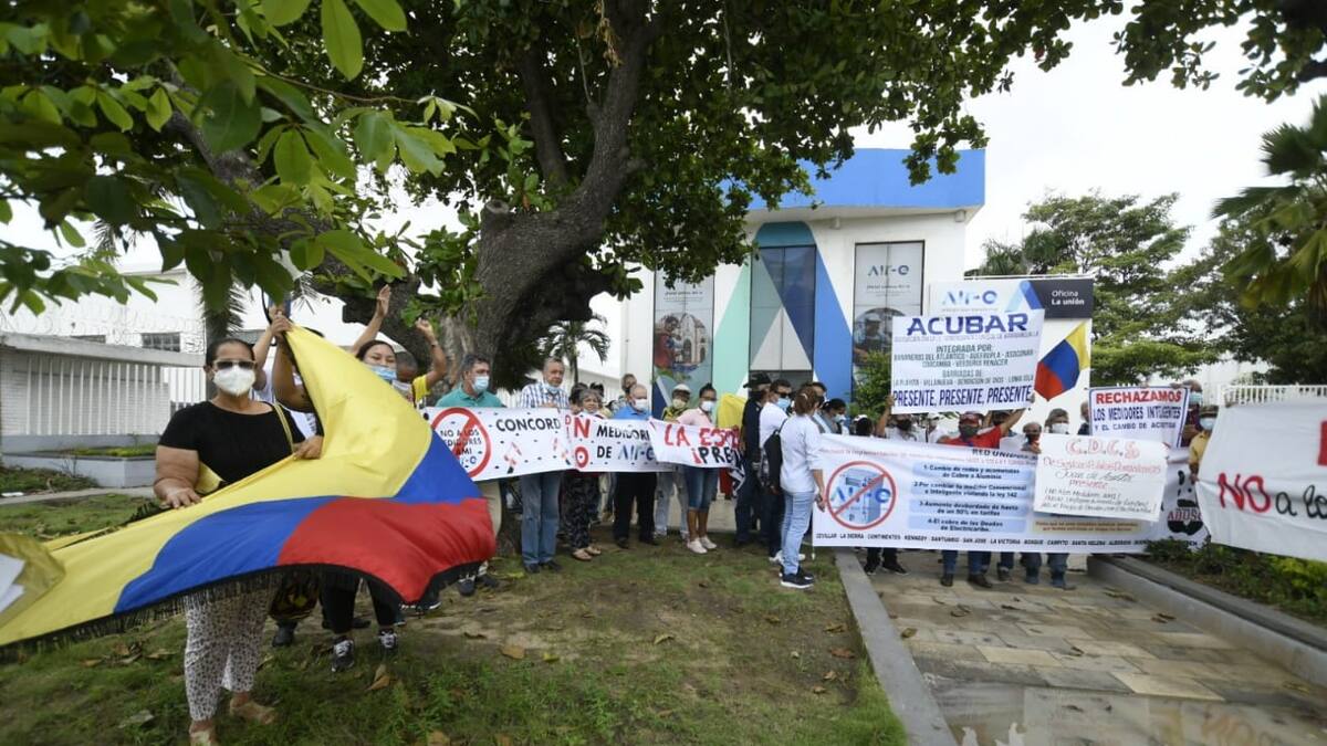 Usuarios de Air-e realizaron un plantón en la sede de esa empresa ubicada en el barrio La Unión, calle 30 con carrera 11, protestar en contra del alza en las tarifas de energía, el uso de medidores inteligentes y el pago de deudas con Electricaribe.