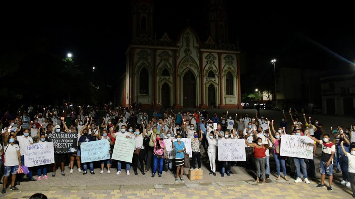 En la tarde-noche de este martes, un grupo de comerciantes del Centro de Barranquilla participaron en una ‘Velatón’ en la Plaza San Nicolás con el fin de exigir a la Alcaldía de Barranquilla y la empresa Air-e que se garantice la prestación del servicio de energía 'de manera legal y regulada'.