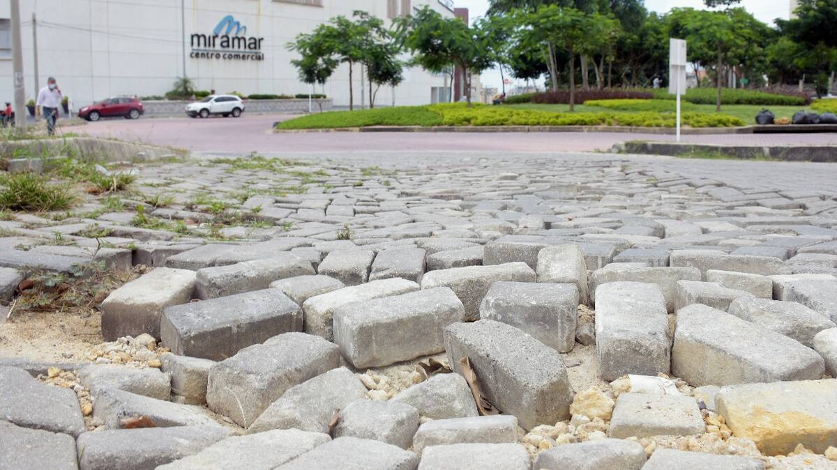 Este medio realizó un recorrido por el sector ubicado en el centro comercial Miramar y comprobó que en diversos tramos de la vía, se hallan adoquines levantados y partidos que evidencian detrimento.